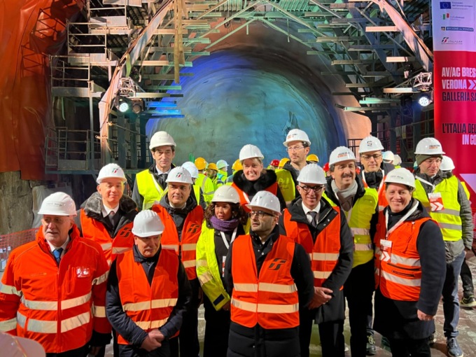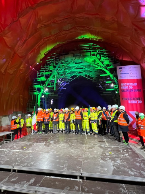 Festa al cantiere Tav di San Giorgio in Salici, per l’ultimazione dello scavo della galleria naturale di 1.450 metri, parte del sistema di gallerie lungo 3.400 metri che attraversa il territorio veronese. Questa tratta permetterà il passaggio della linea ferroviaria ad alta velocità a nord dell’autostrada A4, affiancandosi alla ferrovia convenzionale Milano-Venezia.