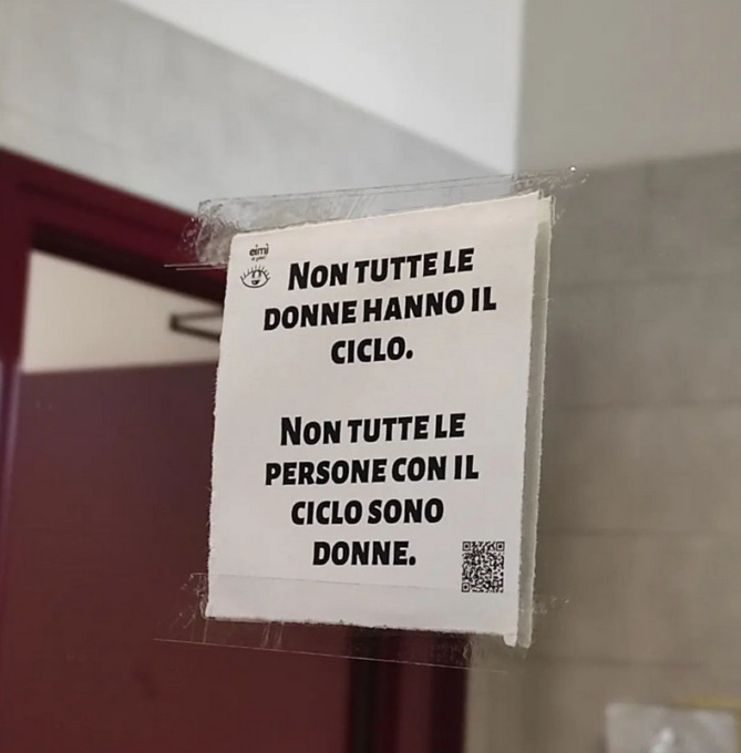 Non sono mancati anche i volantini che recitano “Non tutte le donne hanno il ciclo. Non tutte le persone con il ciclo sono donne”. Questa iniziativa, in concomitanza con il “Pride Month”, vuole portare all’avvio del cambiamento nell’università, per fare in modo anche attraverso dei “bagni neutrali”, di accogliere, considerare e riconoscere qualsiasi tipo di corpo, aldilà della decisione tra i sessi, il maschio e la femmina. Sui social il gruppo Eimì ha spiegato: