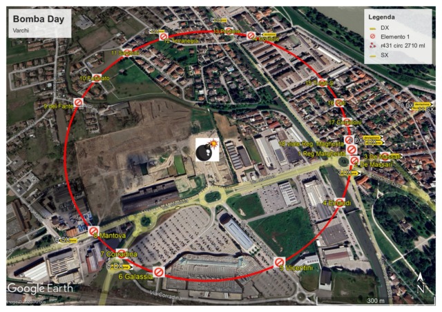 La Zona Rossa è l’area che circonda il punto di ritrovamento per un raggio di 431 metri. L’evacuazione sarà totale: tutti i residenti – inclusi animali domestici – dovranno lasciare l’area entro le 7.30.