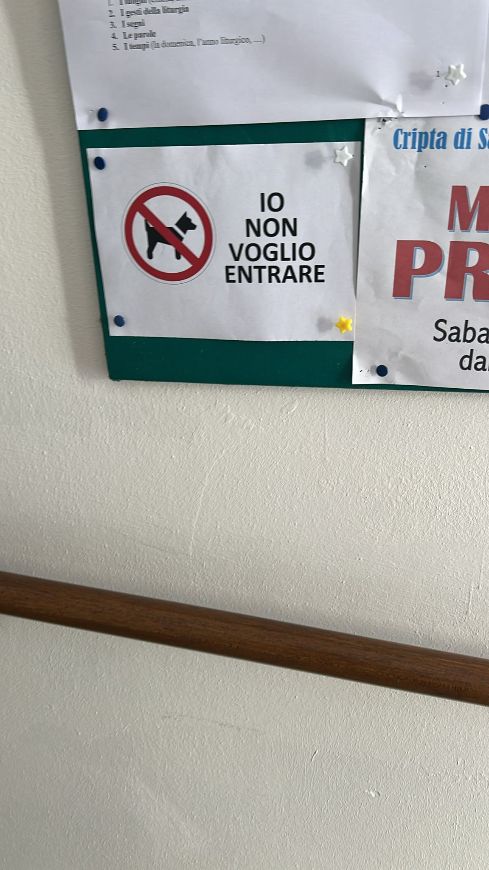 Sicuramente sollecitato da più parti, il parroco avrà tentato di mantenere la questione nell’ambito dell’opportunità di scegliere la chiesa come meta delle proprie visite turistiche, quando ci si accompagni al cane, ed ha tentato di mitigare l’iniziale divieto mettendo in bocca al cane ciò che ritiene possa essere il pensiero di un qualsiasi fedele ed ha sostituito il divieto con due asserzioni che sembrano logiche: io non posso ed io non voglio entrare. Già, logiche ma non per tutti.
