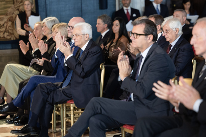 Nel Salone dei Corazzieri del Quirinale, insieme al Capo di Stato, sono intervenuti il Presidente della Federazione Nazionale Maestri del Lavoro, Elio Giovati e il Ministro del Lavoro e delle Politiche Sociali, Marina Calderone. Presenti il Presidente della Camera dei Deputati, Lorenzo Fontana e il Vice Presidente del Senato della Repubblica, Gian Marco Centinaio.