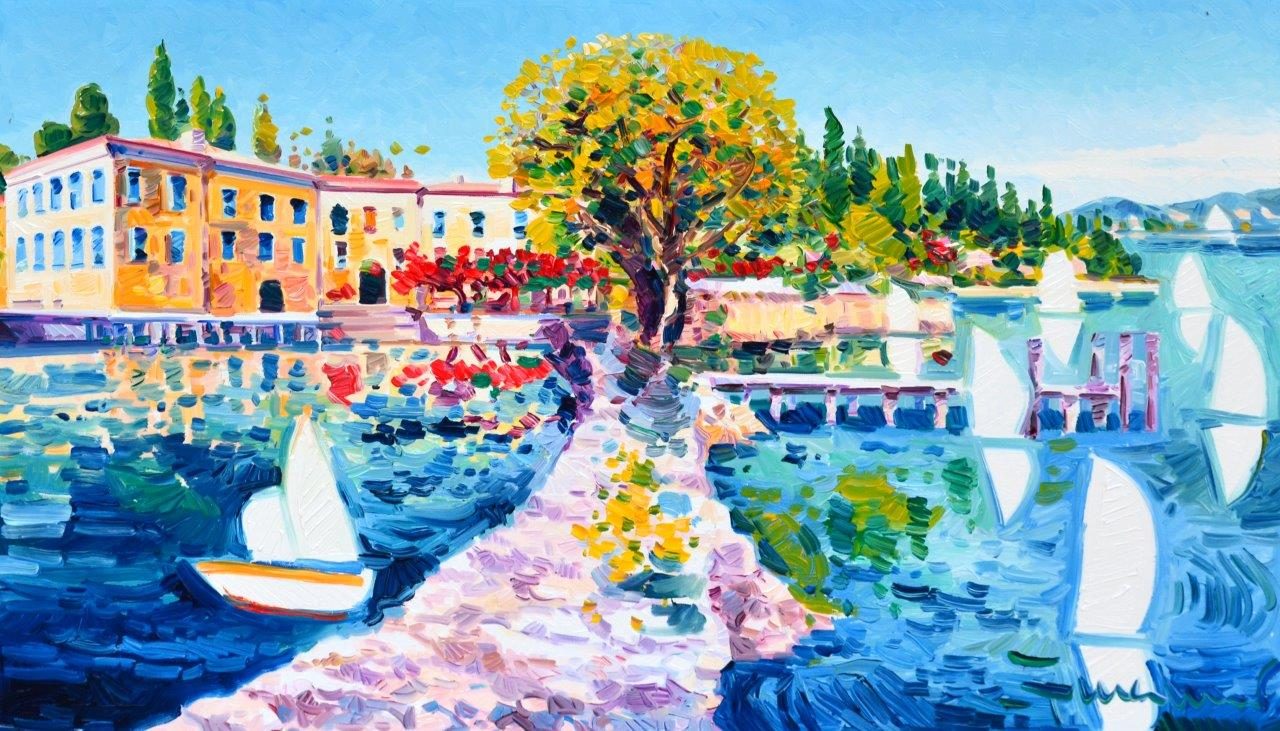 Le opere realizzate da Athos Faccincani, in mostra alla Palazzina Storica di Peschiera del Garda, incantano per armonia e vivacità cromatica. Nei suoi dipinti il sole è sempre alto e non c’è mai una nuvola perché i sogni