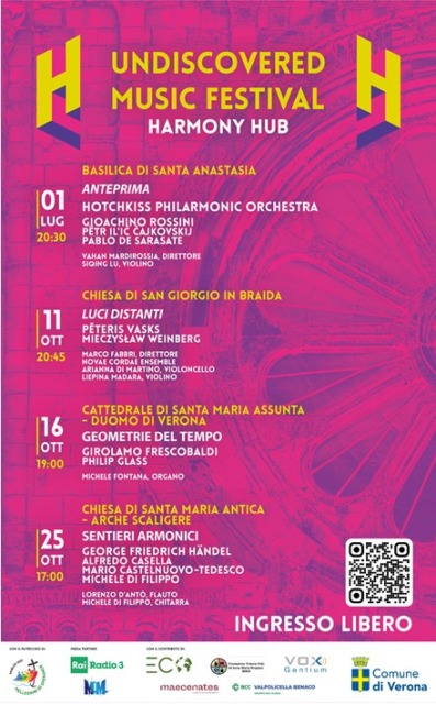 Torna l’11 ottobre 2025 a Verona l’Undiscovered Music Festival, giunto alla sua seconda edizione. Organizzato da Harmony Hub sotto la direzione artistica di Mattia Marsala, il festival propone una serie di concerti a ingresso libero dedicati alla musica strumentale del Novecento, con incursioni che collegano composizioni antiche e contemporanee.