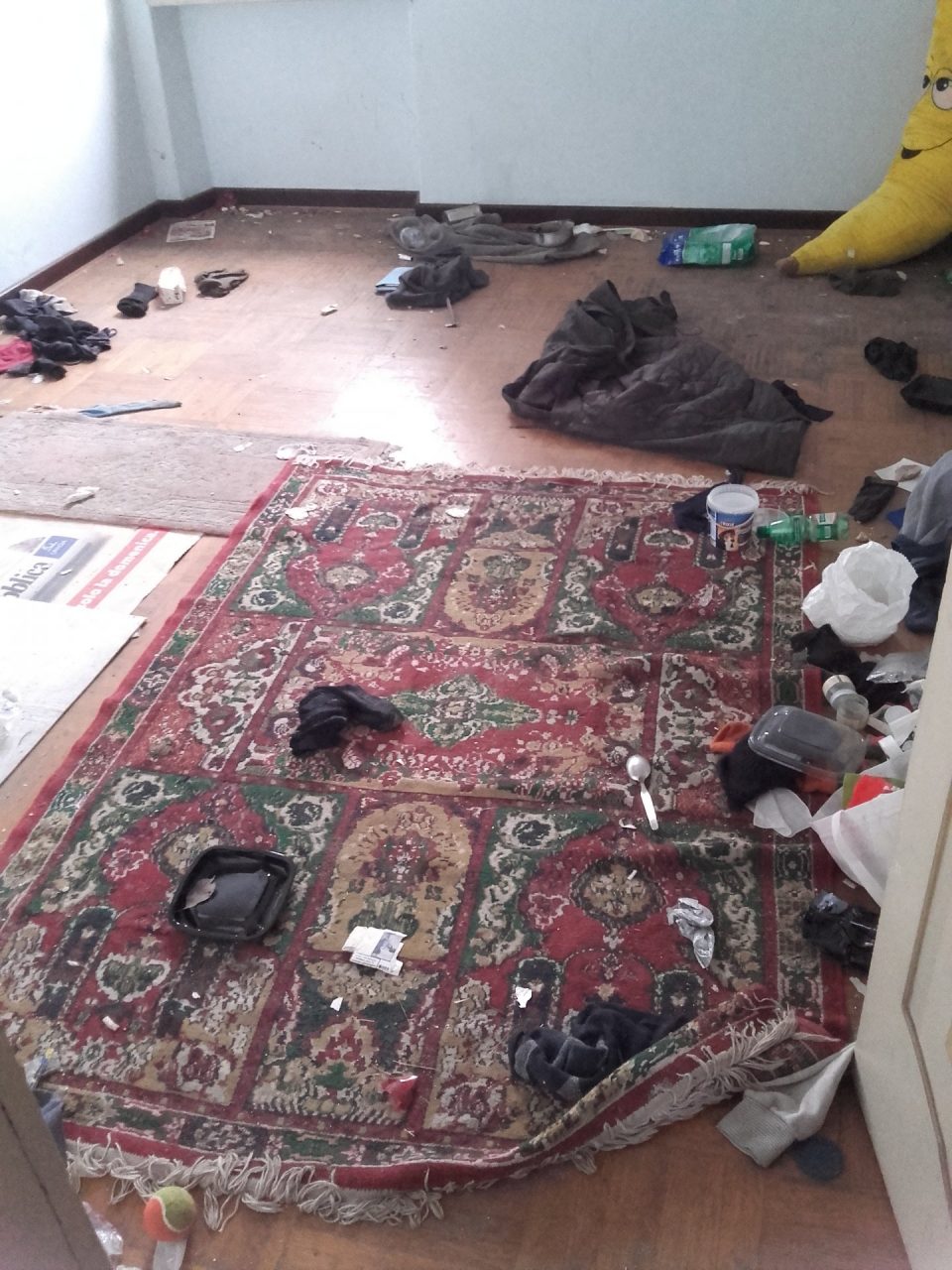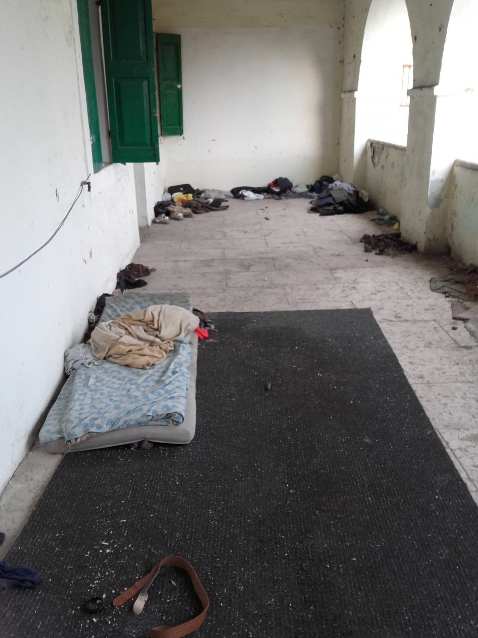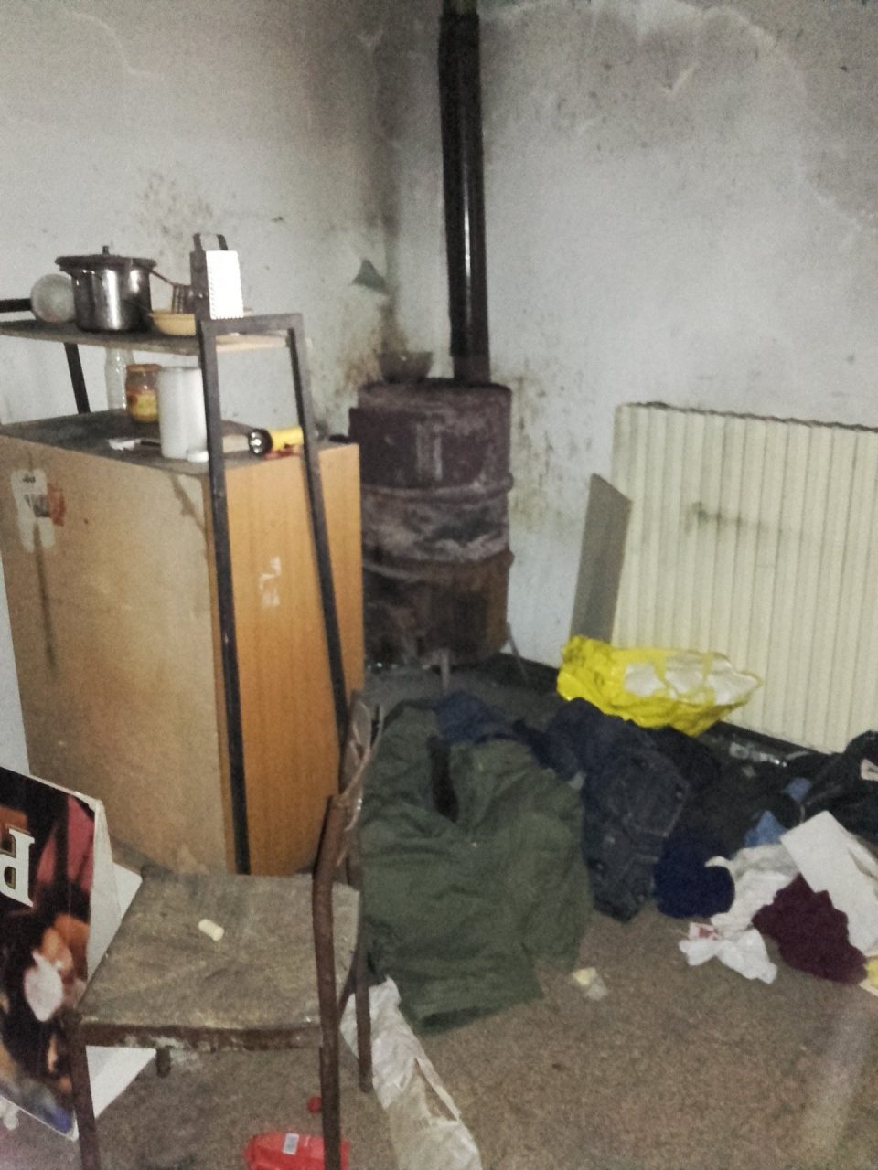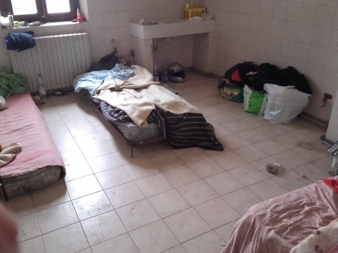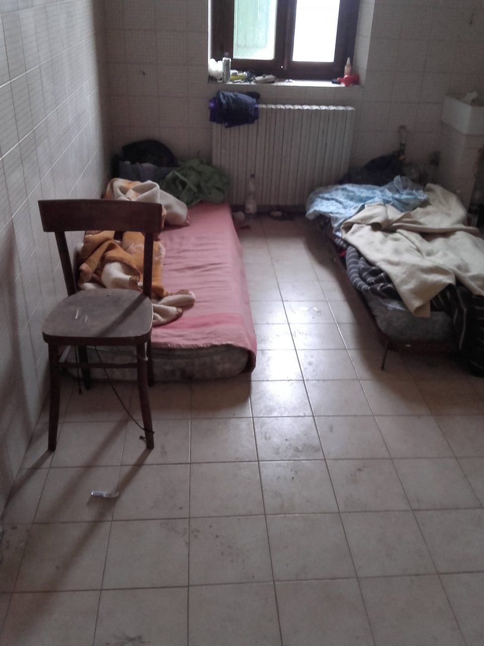 All'interno una dozzina di giacigli usati di recente da senza fissa dimora.
