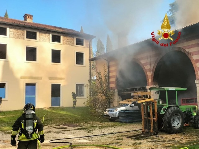 Momenti di paura a Soave, nel corso del pomeriggio di giovedì 27 novembre 2025, a causa di un incendio che ha riguardato la barchessa di un’azienda agricola.