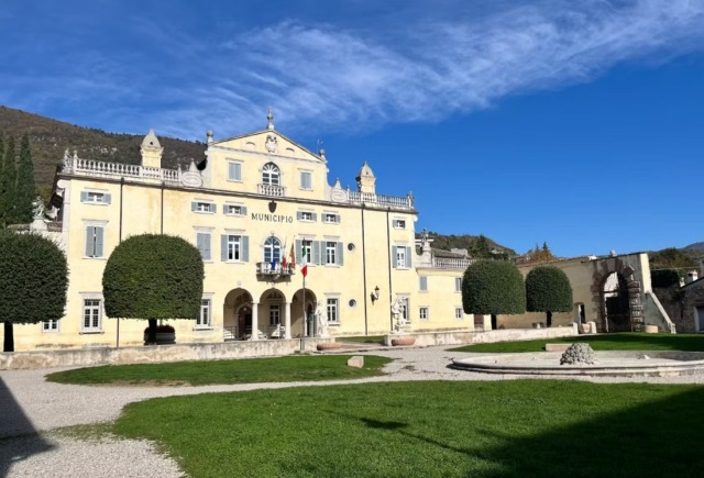 Villa Carlotti, attuale sede del Comune di Caprino Veronese dal 1952, sorge sulle fondamenta di una dimora rurale quattrocentesca. Passata dalla famiglia lombarda dei Vimercati ai Carlotti all’inizio del XVII secolo, la struttura fu completata nel 1632 e arricchita da un ampio giardino monumentale, oggi in gran parte perduto. L’edificio mantenne la funzione di residenza nobiliare fino al 1920, quando fu messo a disposizione della collettività da Francesca di Canossa, per poi essere acquisito definitivamente dall’amministrazione pubblica nel 1937.