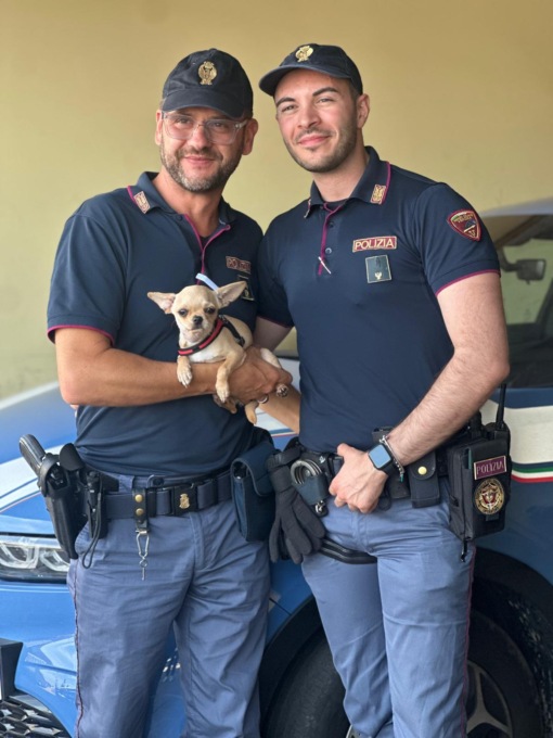 Il cucciolo è stato trasportato immediatamente, a bordo della Volante, alla clinica degli animali, è stato curato ed è stato restituito dai poliziotti al proprietario che, mercoledì 18 giugno 2025, si è recato in Questura ed ha ringraziato gli agenti per aver contribuito al ritrovamento del suo amico a quattro zampe.