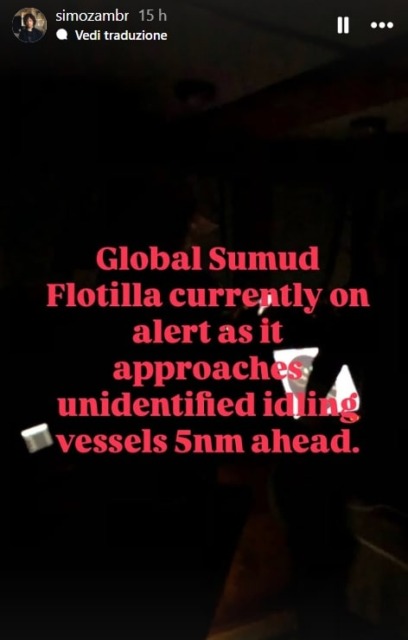 Secondo Zambrin, la tensione è salita all’alba, quando una nave militare israeliana di medie dimensioni si è avvicinata “a ridosso” dell’Alma e di altre imbarcazioni, già a meno di 150 miglia dalla costa di Gaza.
