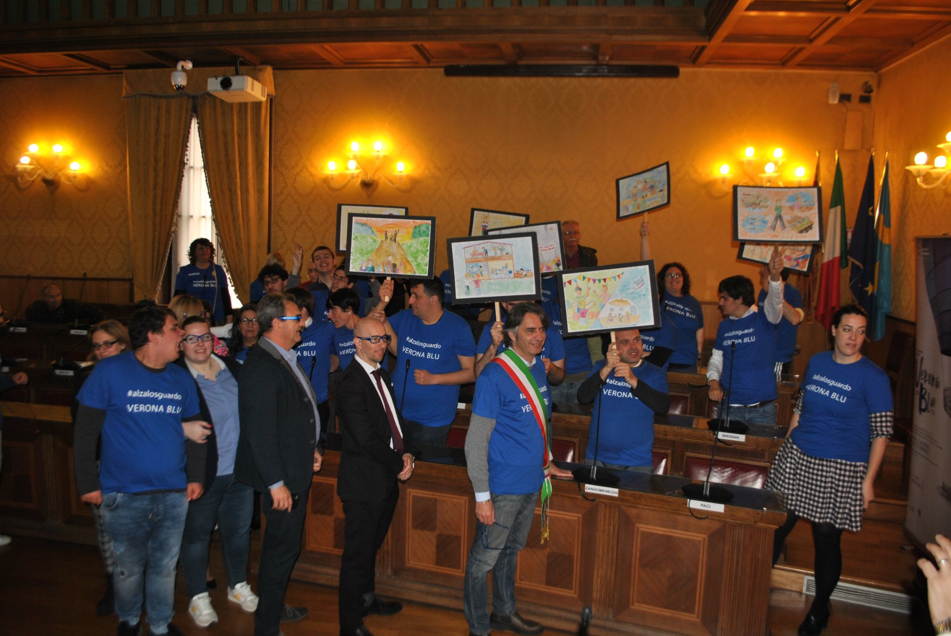 Queste sono solo alcune delle proposte approvate nella seduta speciale del Consiglio comunale di ieri mattina, che ha visto protagonisti i ragazzi ‘speciali’ affetti da autismo, con i loro accompagnatori. Tutti in maglietta rigorosamente blu, con lo slogan #alzalosguardo, i ragazzi non hanno lesinato richieste e proposte, ciascuna delle quali è stata votata secondo regolamento. A prendere personalmente nota di ciascuna ‘mozione, il sindaco Federico Sboarina, che al termine della seduta ha dato risposte puntuali alle richieste dei consiglieri.