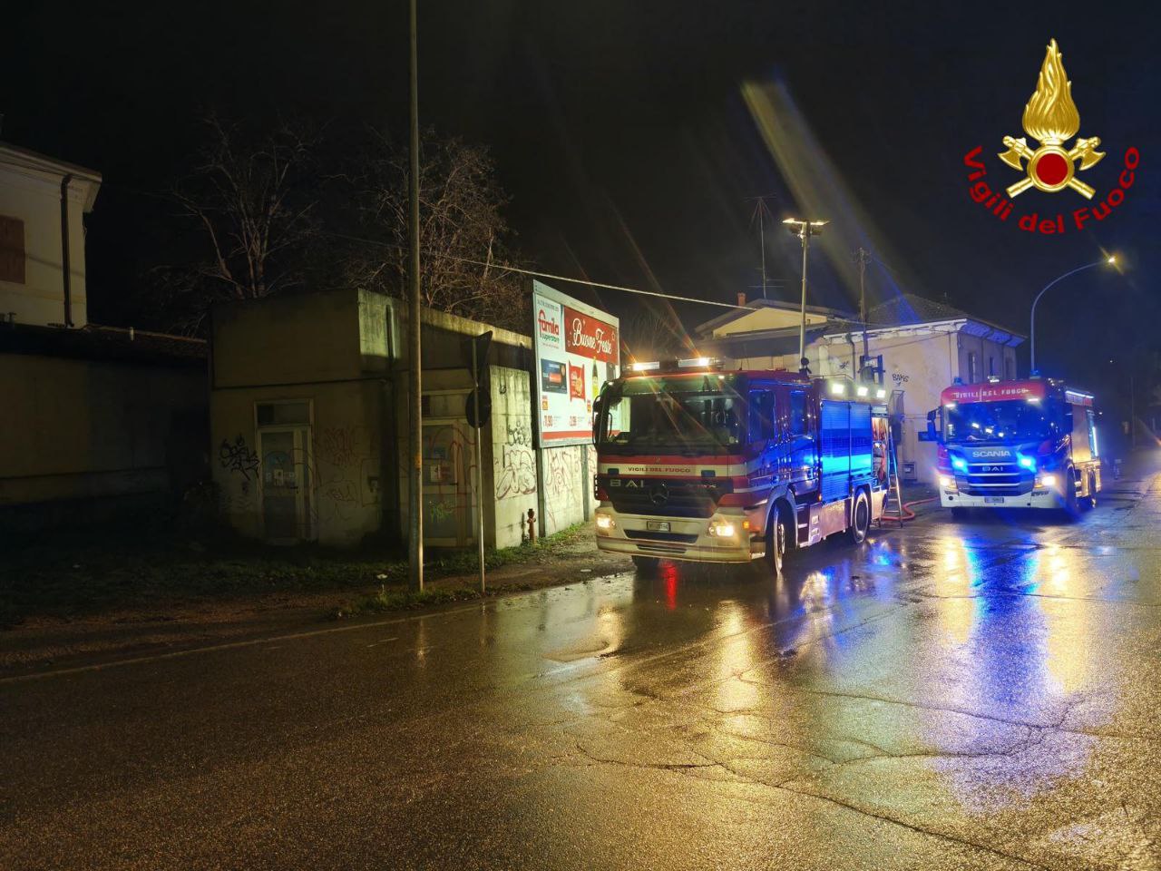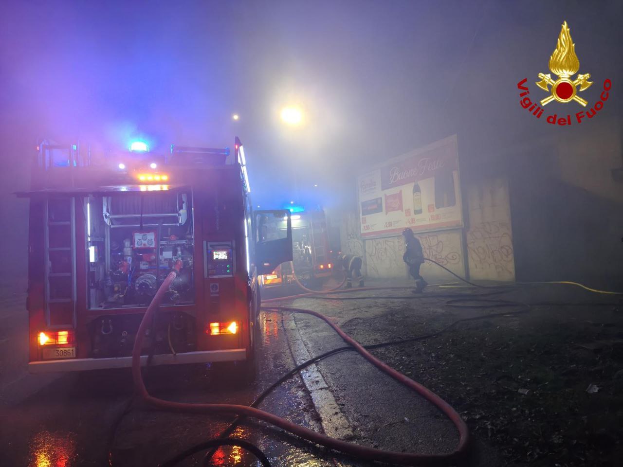 Incendio in deposito a Verona, Vigili del Fuoco in azione la sera della vigilia