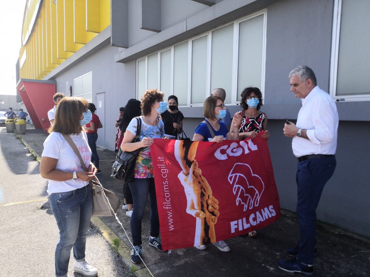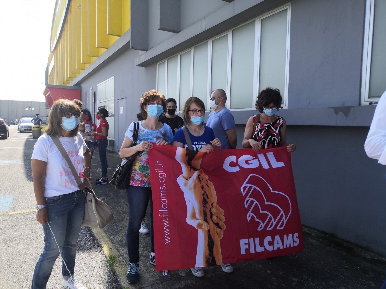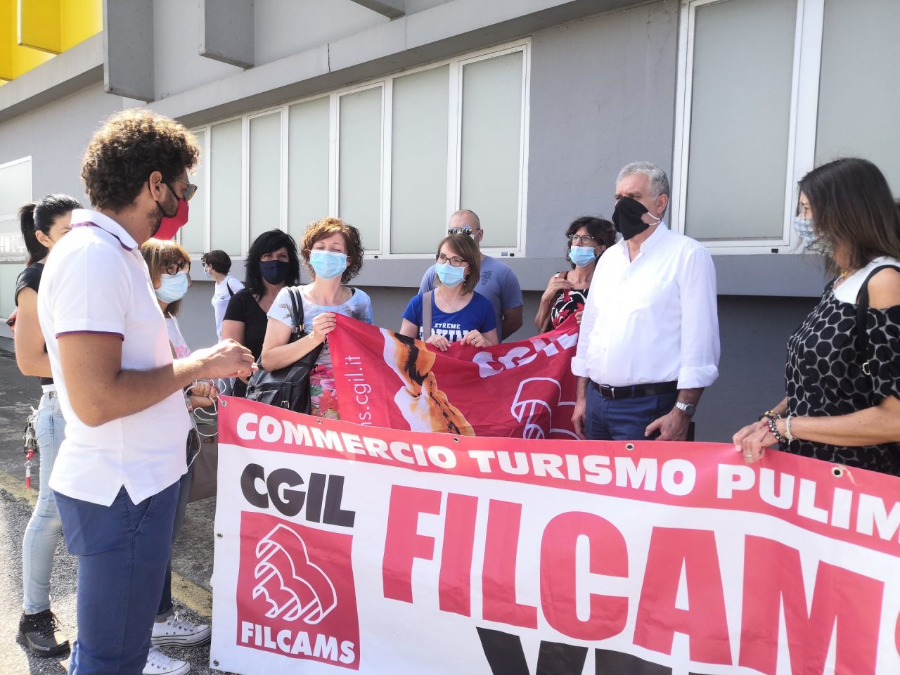 “Più che una manifestazione siamo qui per ricordare ancora alla comunità, agli impresari, alle istituzioni a livello nazionali che queste lavoratrici e lavoratori stanno aspettando di tornare a un posto di lavoro. La loro cassa integrazione doveva scadere il 23 maggio 2020 però grazie al Decreto Dignità e all’articolo 51 che prevede la proroga di altri 6 mesi, queste lavoratrici avranno ancora una cassa integrazione che sarà valida fino al 23 novembre 2020 ma noi sappiamo che non manca molto, novembre è alle porte. Purtroppo la situazione dell’emergenza sanitaria non ha aiutato, questi lavoratori sono qua per chiedere anche alle istituzioni e agli imprenditori locali se qualcuno vuole investire su questo stabile ci sono ancora 30 persone in attesa di riprendere a lavorare, non hanno bisogno di assistenzialismo, loro vogliono lavorare, insieme a loro ci sono altri 1600 lavoratori in tutta Italia che vogliono continuare a fare una vita dignitosa”