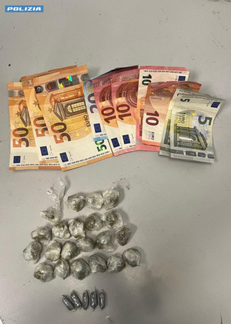 Insospettiti da quell’atteggiamento, gli operatori di polizia hanno proceduto ad una verifica più approfondita che ha condotto al rinvenimento, all’interno della tasca dei jeans indossati dal trentanovenne, di un involucro in cellophane aperto contenente marijuana. Dentro lo zaino, invece, occultati in un calzino, sono stati trovati 20 involucri analoghi contenenti complessivamente circa 25 grammi di marijuana e ulteriori 5 involucri di cocaina, per un peso totale di poco inferiore ai 5 grammi. Il cittadino nigeriano è stato, inoltre, trovato in possesso di 220 euro in contanti, somma ritenuta provento dell’attività di spaccio.