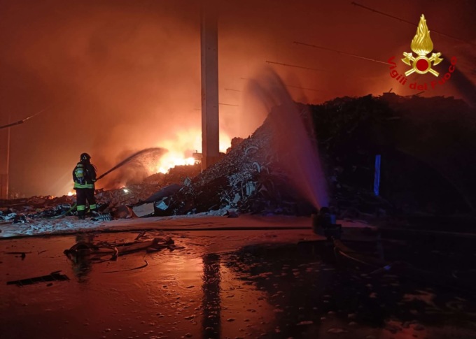 Maxi incendio in un’azienda che ricicla rifiuti ad Angiari