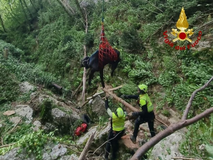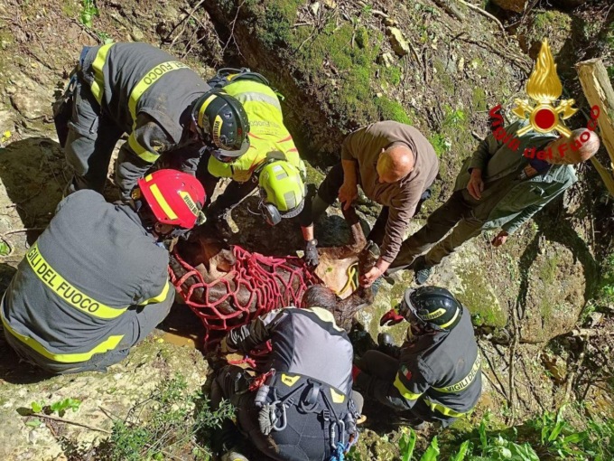 Sul posto sono intervenute le squadre specializzate in operazioni in ambiente impervio e l’elicottero del nucleo volo regionale. I pompieri hanno dapprima raggiunto a piedi gli animali, calandosi nel vaio e bonificando il terreno per permettere un recupero in sicurezza. Grazie all’impiego del verricello a bordo dell’elicottero, nel tardo pomeriggio sono riusciti a trarre in salvo i primi quattro vitelli.