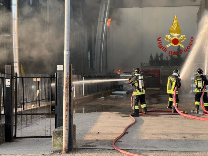 Il rogo è scoppiato intorno alle 15.30 in via Leonardo Da Vinci. Sul posto personale del Suem 118, con automedica e ambulanza, oltre a Vigili del fuoco (con quattro squadre di Verona con il supporto di unità da Vicenza) e Carabinieri.