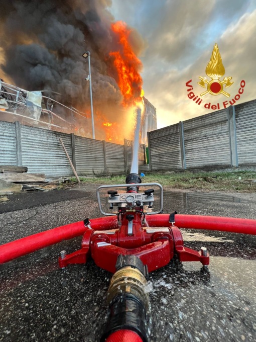 I pompieri stanno cercando di domare l’impressionante rogo con 3 autopompe, 4 autobotti più un’autocisterna chilolitrica, un’autoscala e al momento 26 operatori coordinati dal funzionario di guardia.