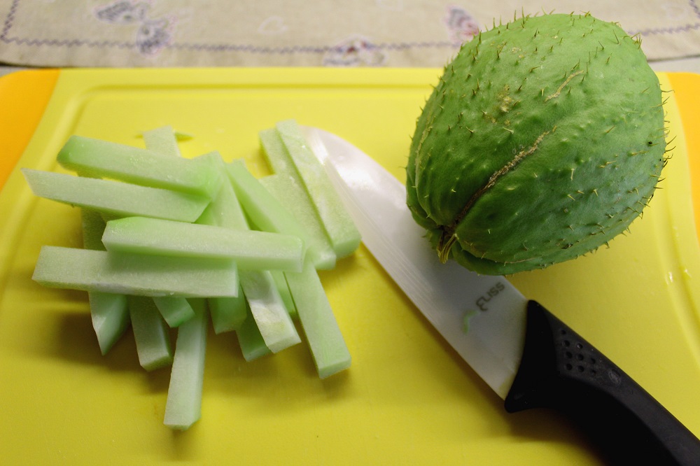 Se volete pulire il chayote o zucchina spinosa vi conviene utilizzare dei guanti per non soffrire troppo con le spine oppure muovervi con cautela.