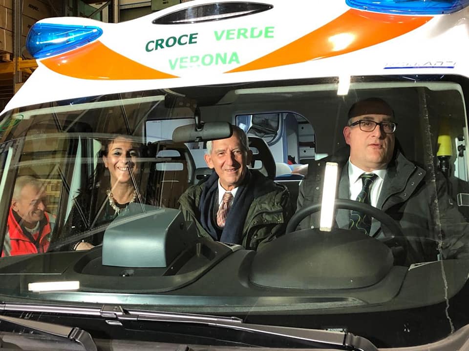 Alla fine della cerimonia l’imprenditore veronese ha voluto donare, a nome dell’impresa, alla Croce Verde di Verona, una nuova ambulanza che si aggiunge alle altre due già donate nel 2008 e nel 2001.