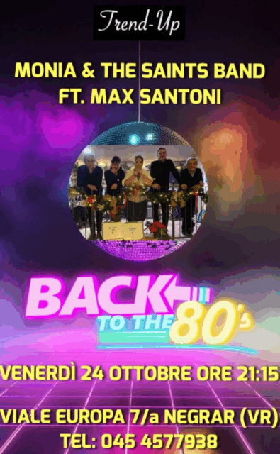 Sul palco del Trend-Up di Negrar, in Viale Europa 7a, risuoneranno le hit più amate come Do you really want to hurt me, Maniac, All night long e Hot stuff, per una serata a tutto ritmo e nostalgia.