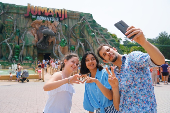 Jumanji® -The Adventure – è una dark ride per avventurieri di ogni età che affrontano il percorso attraverso 12 ambientazioni scenografiche a bordo di speciali veicoli multi-motion – a forma di fuoristrada, il celebre mezzo 4×4 del film riprodotto nei minimi dettagli – che, oltre a compiere un movimento lineare lungo il binario, reagisce ai pericoli, agli ostacoli e agli effetti audio e video disseminati lungo il percorso ruotando su sé stesso e oscillando, simulando i movimenti di un vero fuoristrada. A rendere l’esperienza ancora più immersiva sono i 7 schermi, di cui due di grandi dimensioni, posizionati nell’attrazione.