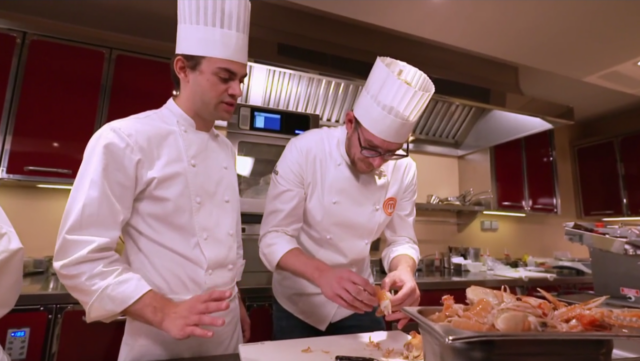 Ogni concorrente ha lavorato con un sous chef sotto la supervisione diretta di Perbellini. L’obiettivo era servire nove ospiti, con due piatti a testa, in un’ora di tempo.