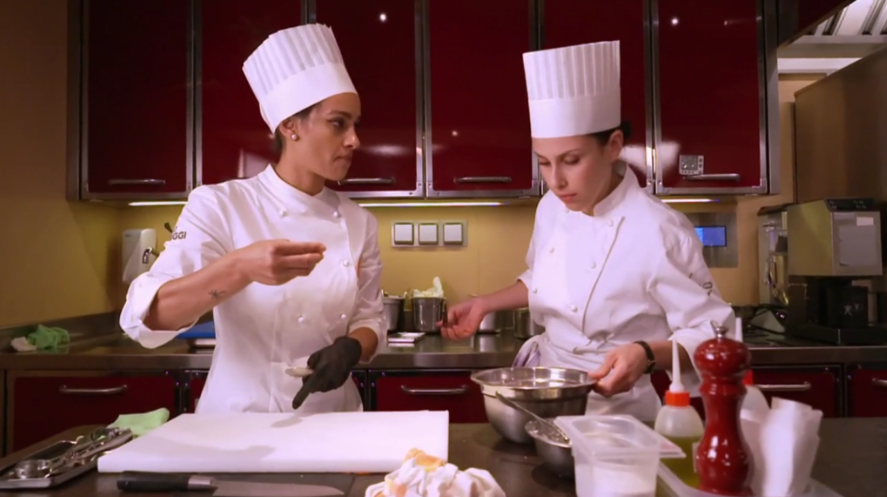 Durante la prova, lo chef è intervenuto più volte per correggere metodo e tempistiche, sottolineando la precisione richiesta in una cucina tristellata. A quindici minuti dalla fine ha avvertito: